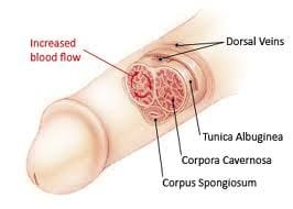During an erection, the tissues in your penis fills with blood. The more blood these tissues hold, the bigger and harder your penis becomes.