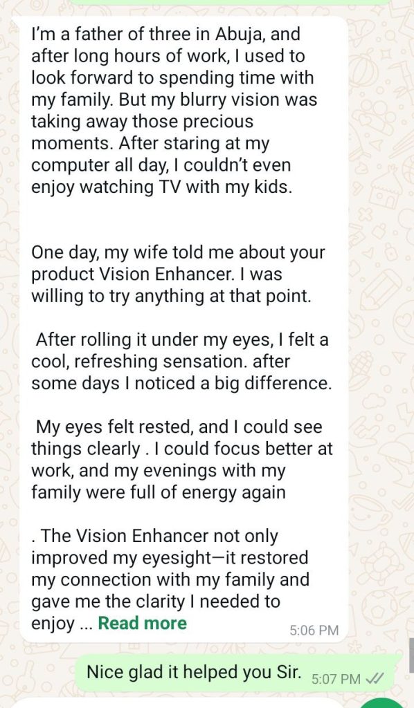 Take control of your eye health today-Don’t Wait till you Become Blind, Order now and free yourself from all eye problems!”